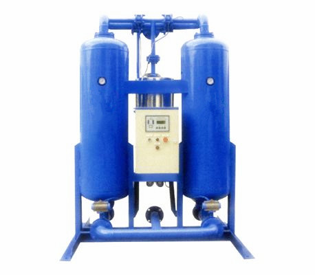微热再生干燥机按“变温吸附”(TSA)原理进行吸附剂再生,再生条件比无热再生干燥机优越。加热能脱附吸附剂内表面的水蒸气,使吸附剂实现深层吸附,因此有热再生干燥机中吸附剂的动态吸附量远远比无热再生干燥机中的吸附剂动态吸附量大。